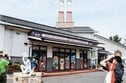 ツアー開始後初の週末を迎え、キャラクターでラッピングされた普通列車米子行きが午前11時15分に由良駅に到着。降車した約200人の観光客で駅舎はいっぱいになった。同町の手嶋俊樹町長らがツアーオリジナルのクリアファイルなどを手渡したほか、コナンの着ぐるみが出迎えた。