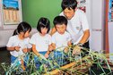 七夕に合わせ、島根県邑南町井原の産直市「ふれあい市場雲井の里」に、子どもたちらの願いが飾り付けられた高さ約8メートルの巨大なササがお目見えした。