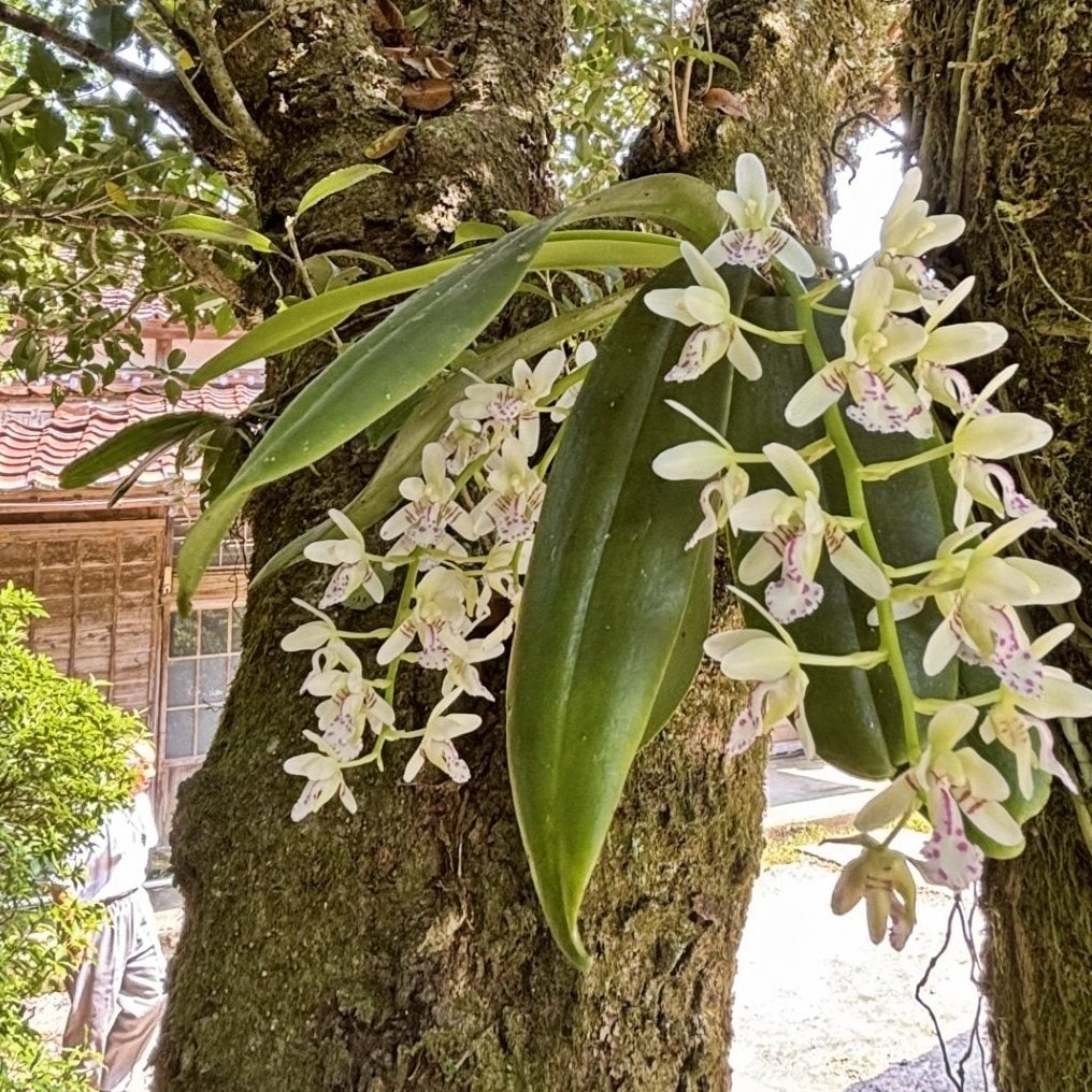 島根県隠岐の島町内でナゴランが開花し、甘い香りを漂わせている。沖縄や九州に多いが、自生の北限地として、今年も美しい花を数多く咲かせた。