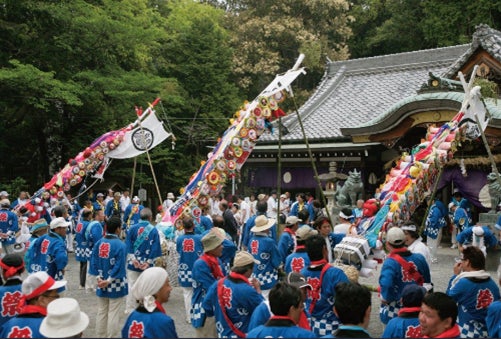 安産や良縁を願って奉納した25個の飾りまくらをくくりつけた幟を御旅所まで渡御したのがはじまりとされています。この祭りは、日本遺産「旅引付と二枚の絵図が伝えるまち-中世日根荘の風景-」の構成文化財の1つ にもなっています。