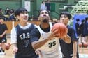 「鬼ディフェンス」が代名詞の白濱僚祐選手(33)と、ハンドラー兼シューターとしてチームを支える納見悠仁選手(28)が、出雲市内9チームの5~6年生47人に指導した。