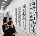 会場には一字書や禅語など力作が並ぶ。大賀美支部長は「これが今のわれわれです、という作品が集まった。うまさよりも気持ちが感じられる書を楽しんでほしい」と呼びかけた。午前10時~午後6時(最終日は午後5時まで)。