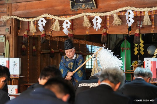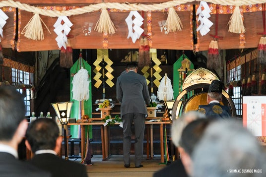 2025年7月24日(木)、松江市総合体育館(松江市学園南一丁目)の改修工事に向けた安全祈願祭が、松江市の須衛都久神社にて執り行われました。
