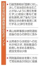 自民両院議員懇 「首相続投」「責任明確に」 島根・鳥取両県選出議員、主張分かれる 山陰 スポーツ 2025/7/29 04:00 保存 参院選の大敗を受け、自民党が28日、東京・永田町の党本部で開いた両院議員懇談会は約4時間半に及んだ。党総裁の石破茂首相が改めて続投を表明したものの、衆参両院で過半数を失ったことから... 残り819文字(全文:910文字) 続きを読むには会員登録が必要です 無料会員に登録する ログインする 保存 記事を保存する この機能は有料会員限定です。保存した記事やフォローした特集をマイページでご覧いただけます。 有料会員になる ログイン 関連記事 自民、続投批判相次ぐ 首相辞任否定「責任」強調 森山幹事長は引責に含み 両院議員懇談会 2025/7/29 04:00 強気の首相に党内反発 進退巡る政局、長期化も 自民両院議員懇談会 2025/7/29 04:00 混乱する自民を野党が批判 自民両院議員懇談会 2025/7/29 04:00 首相激励、本音は右傾懸念 SNS拡散、集会に発展 参政との連立警戒も 2025/7/29 04:00 石見神楽の創作舞台、LEDで「光る大蛇」 23日上演前に最終調整 益田・グラントワ 小林幸子さん特別出演 2025/11/21 14:45 特集・連載 国要望が頓挫、独自条例へ 「竹島の日」条例制定尽力の故上代県議 住民の声、怒りを原動力に きょう20回目竹島の日 2025/2/22 04:00 住民、竹島問題啓発を要望 5年ぶり、領土議連と意見交換 2025/2/22 04:00 保冷剤の「プニプニ」、何でできてる? 冬場も重宝、処分は要注意 2024/11/24 04:30 献体者の冥福祈る 出雲、島根大医学部で慰霊祭 2024/11/2 04:00 まちの未来に私の力を 地域でひろがる活動の輪 演劇でつながる、笑顔の輪 浜田市 大岡正道さん お子さんがより学べる家庭環境とは? 小中学生の保護者必聴セミナーを11月15日(土)に開催 営業力強化で安定受注へ ㈱守谷刃物研究所 代表取締役社長 守谷 吉弘氏