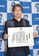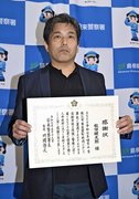 江津署はこのほど、海に入り命を絶とうとした50代女性を救助した江津市江津町の会社員、栗岡宏さん(54)と同市渡津町の会社員、渡辺貴文さん(47)に感謝状を贈った。