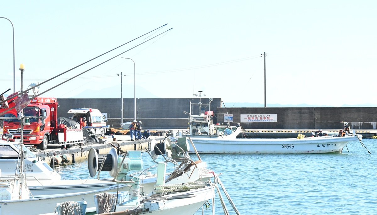 2日午後2時20分ごろ、出雲市大社町杵築北の大社漁港内で「車が海に落ちて、沈みそうだ」と目撃者から119番があった。出雲市消防本部などによると、約3時間後に海に沈んだ車両の運転席から男性1人を発見し、死亡を確認した。