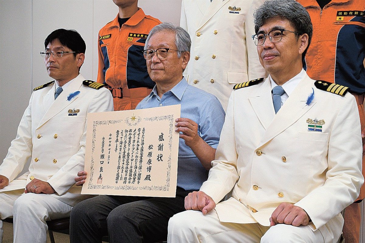 伝達式で、同保安本部の樋口則一警備救難部長から松原さんに感謝状が手渡された。松原さんは「海上保安庁の救急救命体制の維持、向上に微力ながら携わらせていただいた。(受賞は)うれしく、光栄なこと」と話した。(松本稔史)