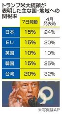 トヨタ、純利益44%減へ 関税影響は1兆4千億円 2025/8/7 18:37 保存 トヨタ自動車は7日、2026年3月... 残り252文字(全文:270文字) 続きを読むには会員登録が必要です 無料会員に登録する ログインする 保存 記事を保存する この機能は有料会員限定です。保存した記事やフォローした特集をマイページでご覧いただけます。 有料会員になる ログイン 関連記事 対印関税「大幅引き上げ」 ロ原油購入「2次制裁」も トランプ氏警告 2025/8/7 04:00 ホンダ、米関税で利益半減へ 26年3月期 4500億円下押し要因 現地生産強化、値上げ検討 2025/8/7 04:00 新「相互関税」きょう発動 日米合意、文書に記載なし 2025/8/7 04:00 米、医薬品関税250%に 大統領 習氏と年内会談も 2025/8/7 04:00 大手賃上げ2年連続5%台 バブル期以来 経団連25年春闘最終集計 2025/8/7 04:00 特集・連載 竹島のアシカ猟 映像公開 領土・主権展示館拡張 2025/11/15 04:00 竹島式典「閣僚出席」巡る首相の慎重発言 丸山知事が理解示す 2025/11/12 04:00 学校図書室の古すぎる本、なぜ廃棄しない? ある規定が“足かせ”に… 適切な廃棄基準も紹介 2025/2/19 04:01 献体者の冥福祈る 出雲、島根大医学部で慰霊祭 2024/11/2 04:00 【石崎巧・朴航生出演】 「勝手に!スサマジトーク公開収録」 観覧者募集中! 地元で育つミライのチカラ 島根県立浜田水産高校 「ゼロからの挑戦~楽天イーグルス創設に学ぶ突破力。仕事の壁にぶつかった時、私が必ずやってきたこと~」池田敦司氏が講演 家族で就活研究 さんいんの輝く企業特集