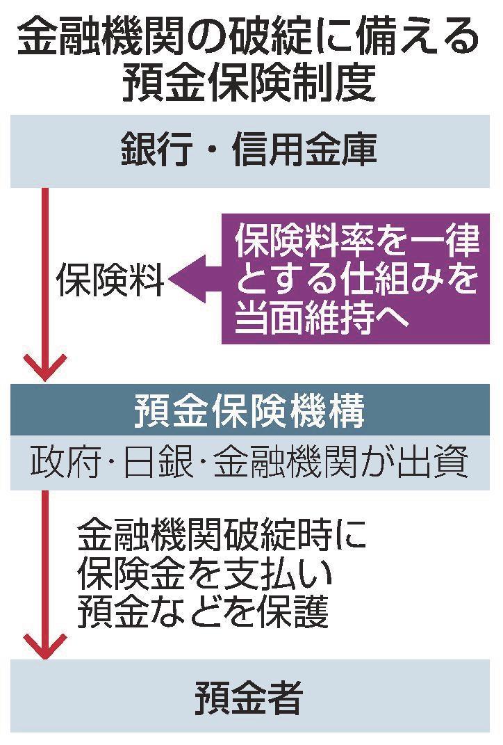 金融庁は23日、銀行や信用金庫の破綻時に預金を保護するため、金融機関が預金残高に一律の料率を掛けた額を毎年払う「預金保険制度」の改革を先送りする方針を固めた。再編などによる経営改善を促すため、財務の健全性が高い金融機関の料率を下げて、健全性が低い金融機関は上げる方向だったが、銀行などが新型コロナウイルス禍で打撃を受けた企業の支援を優先させる中、早期導入は困難と判断。当面は現行制度を維持する。