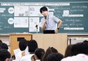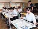 編成局の担当者に、記事は最初の段落を前文として目立たせ、見出しは簡明で内容がよく伝わることが大事と教わった。子どもたちは紙面作りに熱中した後、オリジナル紙面の制作者の欄に自分の名前を打ち込み誇らしそうだった。