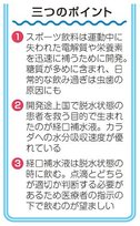 水分補給のトリセツ(6)谷口英喜 脱水症 命に関わる事態も 2025/8/11 04:00 保存 カラダの水分の適切な量は、年齢、性別、体格などに応じて決まっています。適切な量より水分が減少し、体調不良となった状態が脱水症で... 残り576文字(全文:640文字) 続きを読むには会員登録が必要です 無料会員に登録する ログインする 保存 記事を保存する この機能は有料会員限定です。保存した記事やフォローした特集をマイページでご覧いただけます。 有料会員になる ログイン 関連記事 水分補給のトリセツ(5)スポーツ飲料は運動時に 2025/8/4 04:00 水分補給のトリセツ(4)谷口英喜 飲み慣れたコーヒーでもOK 2025/7/28 04:00 水分補給のトリセツ(3)谷口英喜 基本は食事、不足分を飲む 2025/7/21 04:00 水分補給のトリセツ(2)谷口英喜 「貯蔵庫」の筋肉量も左右 2025/7/7 04:00 水分補給のトリセツ(1)谷口英喜 健康な日常を送るために 2025/6/30 04:00 特集・連載 新医学部長に竹谷氏 島根大 2025/8/27 04:00 リーグ優勝へ守備力が鍵 スサマジ、強み武器にCSへ <データism> 2025/4/28 04:00 一刀領談・下條正男 石破首相と戦後80年談話 「盗人に追い銭」は愚か 2025/4/14 04:00 「くまモン」のブランド戦略学ぶ 松江、島根大で教授講演 2024/12/6 04:00 地域住民の懸け橋になった「西田にじいろ食堂」 運営スタッフ 出雲市万田町 小林春美さん お子さんがより学べる家庭環境とは? 小中学生の保護者必聴セミナーを11月15日(土)に開催 世代を超えて楽しむ 地域に広がるバウンスボールの輪 雲南市加茂町 日野勝己さん 動ける今を楽しむ 地域の集い 奥出雲町に暮らす長谷川公子さん