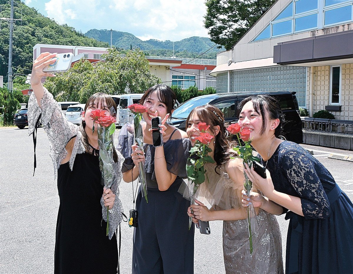 島根県吉賀町の二十歳のつどいが15日、町内であり、サマードレスやスーツに身を包んだ25人が門出を祝い、それぞれの分野での活躍を誓った。