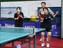 【益田】国際スポーツ大会「東京2025デフリンピック」を盛り上げようと、卓球日本代表の山田萌心選手(明誠高校2年)と佐々岡希花選手(浜田ろう学校高等部1年)=リザーブ=とともに、全国巡回中のキャラバンがこのほど、益田市役所を訪れた。