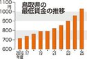 島根の最低賃金、時給1033円 過去最大71円引き上げ 審議会答申 山陰 2025/8/19 04:00 保存 島根地方最低賃金審議会(会長・藤本晴久島根大准教授)が18日、2025年度の島根県内の最低賃金(時給)を71円引き上げて1033円とするよう島根労... 残り675文字(全文:749文字) 続きを読むには会員登録が必要です 無料会員に登録する ログインする 保存 記事を保存する この機能は有料会員限定です。保存した記事やフォローした特集をマイページでご覧いただけます。 有料会員になる ログイン 関連記事 島根の最低賃金議論開始 審議会専門部会 2025/8/7 04:00 最低賃金大幅上げ懸念 島根、鳥取の経営者「地域実情見合う審議を」 2025/8/6 04:00 鳥取最低賃金 時給1030円 過去最大73円引き上げ 審議会答申 2025/8/9 04:00 最低賃金6%増1118円 過去最高水準で決着 中央審 2025/8/5 04:00 論説 最低賃金引き上げ 持続性と格差、不安残る 2025/8/7 04:00 特集・連載 目分量で打つ覚醒剤 「被害妄想」起こしパニックに 薬物依存症だった男性(3)〈顔なき…声〉 2025/9/4 18:00 献血推進大使に大学生4人任命 島根県血液センター 2025/9/1 04:00 口に入れ飲み込もうとした督促状 「心を入れ替えた夫、父親」の裏側 ギャンブル依存症50代男性(3)〈顔なき…声〉 2025/5/18 12:00 カレンダーなぜ日曜始まり?さかのぼると… 手帳は月曜始まり「今は過渡期」 2025/1/12 04:01 【期間限定】島根スサノオマジック「選手のサイン入りTシャツ」プレゼント! 地元で育つミライのチカラ 島根県立益田翔陽高校 子どもから大人まで楽しめる体験ががいっぱい!「みんなあつまれ!つむぐフェスタ」を8月17日(日)に出雲市で開催 歴史と人をつなぐ語り部 荒神谷ボランティアガイドの会 会員 長廻 三枝子さん