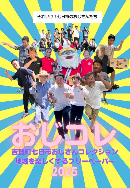 冊子「おじコレ」の表紙。七日市地区の魅力的なおじさんが多数登場。