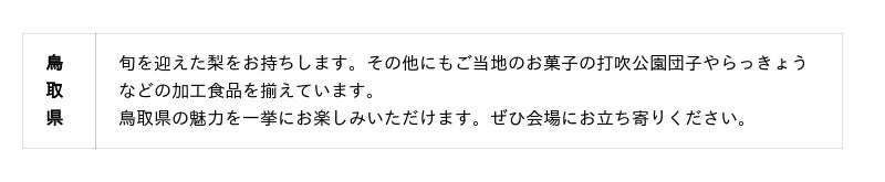 ・ 8月は、鳥取県(27-28日)の名産品が集結