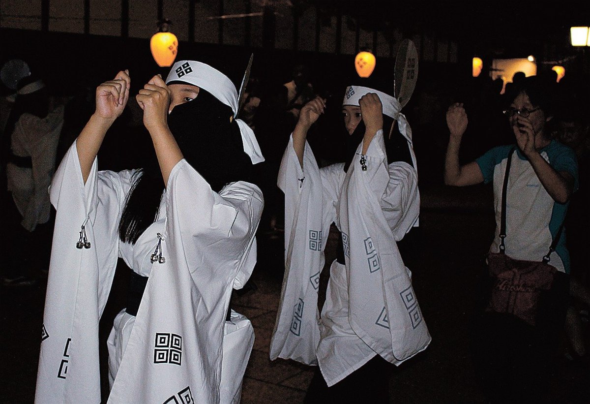 今年は津和野踊り保存会が指導して練習会や体験会を事前に開いた。同保存会の山岡浩二会長(69)は「新たな取り組みを進め、津和野の黒頭巾の盆踊りをもっと広めていきたい」と話した。(岡野優衣)