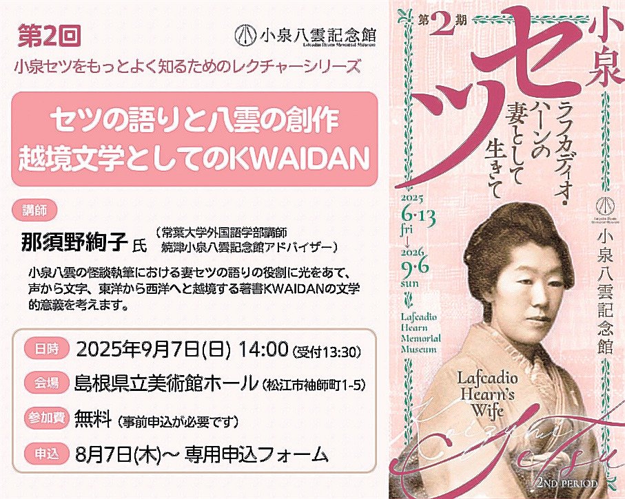 定員は150人で先着順。申し込みは専用申し込みフォームから。問い合わせは小泉八雲記念館、電話0852(21)2147。