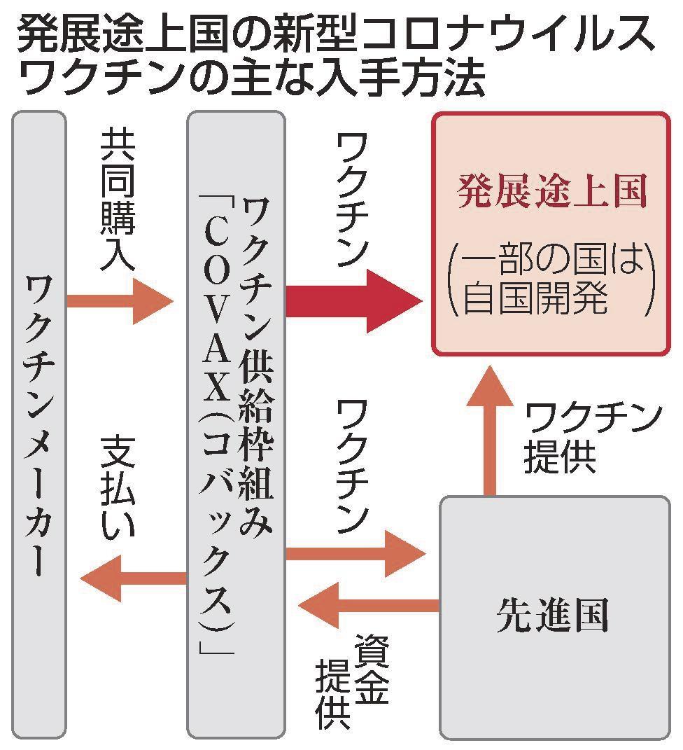 A 共同購入し分配する国際枠組み「COVAX(コバックス)」が頼みの綱で、米国や中国、ロシアが影響力拡大のため、コバックスへの資金提供や実物配布でワクチン外交を展開。中国製を導入したチリでは感染が収まらず、効果が疑問視されています。イランやカザフスタン、キューバなど国産ワクチンを開発した国もあります。
