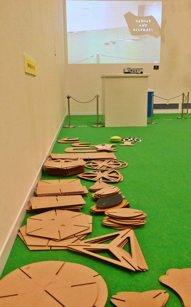 さまざまな布の質感を比べたり、巨大な羽根を作るコーナーがある。箱の中身を触って当てるゲームも親子で楽しめる。