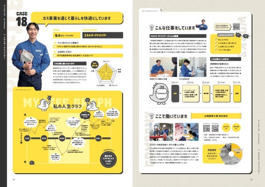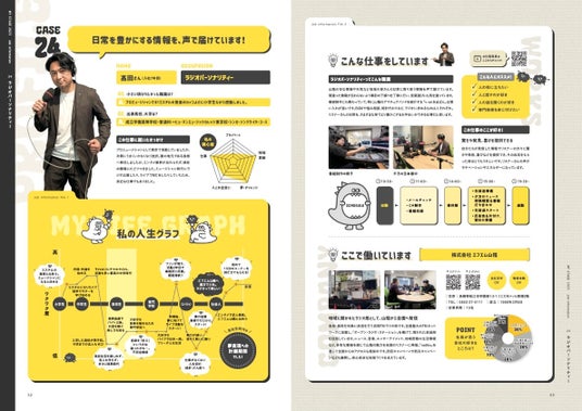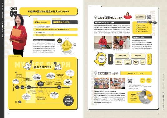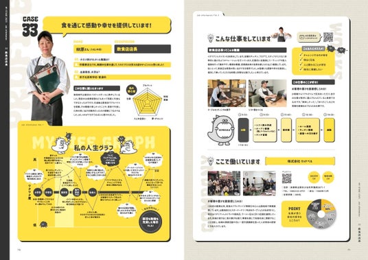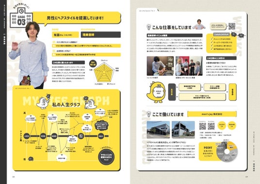 高校生に身近な飲食店の店長や美容師をはじめ、名前は知っていても仕事内容が分かりにくいラジオパーソナリティーやバイヤー、公共サービスの仕事など、44人のお仕事を紹介しています。さらに、本号では昨年の利用者アンケートで多くの要望が寄せられた「お仕事紹介動画」も誌面に追加しました。映像と音声で仕事の雰囲気を伝えることで、仕事の魅力をより深く感じられる内容へとアップデートしています。