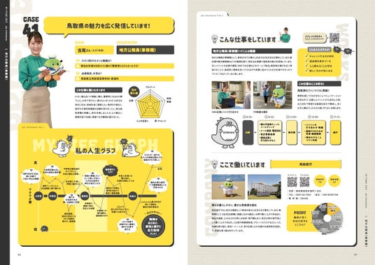 昨年は、「職種を知ること」「企業を知ること」ができる仕様でしたが、第2号では、さまざまな経験や人との出会い、紆余曲折を経て現在、山陰地域で活躍するロールモデルを多数掲載。単に職業の魅力を伝えるのではなく、実際に企業で働く方々に焦点を当て、『職業に就くまでの道のり』や『挫折・失敗談』などのリアルなストーリーを紹介しています。そうした体験談を通じて、高校生が「新たな発見」と「将来への希望」を感じられる内容となっております。