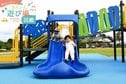 ペダルをこいで発電する自転車型トレーニング器具や、太陽光で動く遊具、電気で動く車のおもちゃに乗って、再生可能エネルギーの力も実感できる。