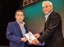益田中学校で贈呈式があり、同校卒業生の高橋建設の高橋宏聡社長(53)が「地域に貢献しないと企業は続かない。引き続き地域の役に立つ取り組みをしていきたい」と話した。