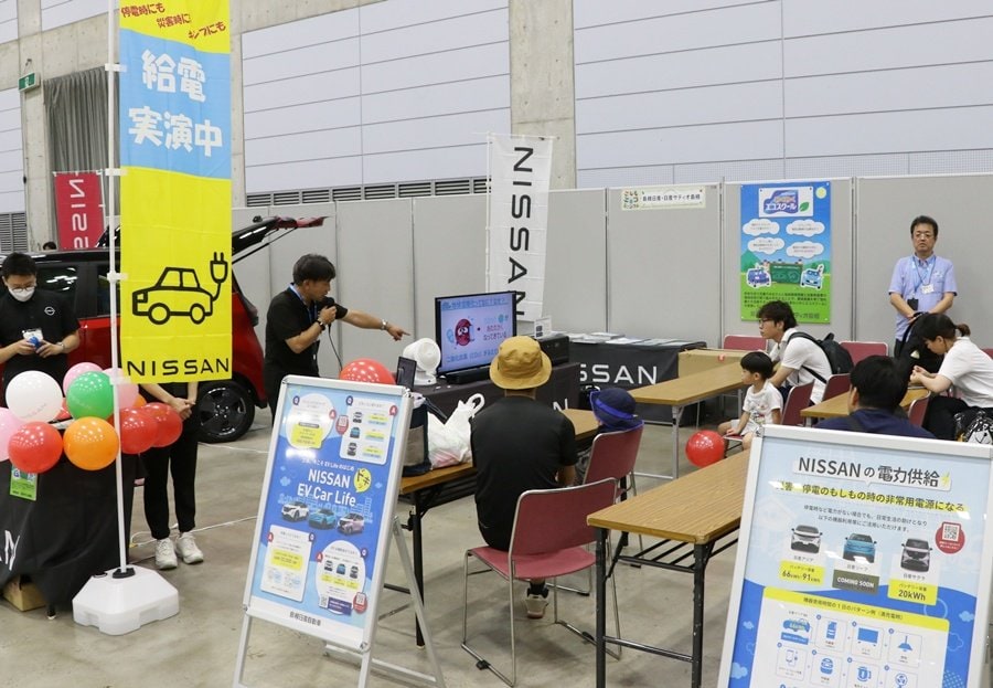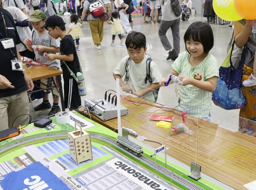 会場では発電や木材工作の体験ブース、電気自動車(EV)の展示コーナーが設けられたほか、家庭で余った食料品や日用品を支援を必要とする子育て世代に届けるフードドライブを開催。環境やエネルギーに関するクイズラリー、キャラクターショーも行われ、終日にぎわった。