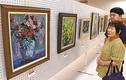 益田市常盤町のキヌヤ益田ショッピングセンターで17日、益田美術クラブの作品展が始まり、鮮やかな油絵や繊細な水彩画など45点が、来場者の目を楽しませている。21日まで。入場無料。
