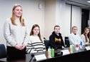 生徒らは学校で英語以外にもスウェーデン語やドイツ語といった多言語の授業があり、夜9時以降でも太陽が沈まないことなどを報告した。食事は1日5食あり、おなかいっぱいになって大変だったという人もいた。