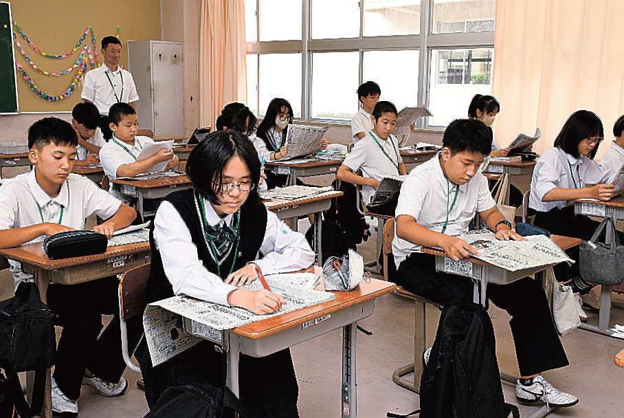 1年生28人と2年生35人が24日、記事の書き方や見出しの付け方を山陰中央新報社のNIE担当から学んだ。