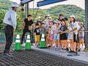 新しい橋に園児お絵かき 安来で工事現場を見学