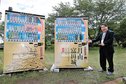 作品「戦勝の誓い」は尼子と毛利の戦いを前に鹿介が本丸に向かって刀を掲げる姿をイメージした。空白のバランスや刀に日が当たってきらめく瞬間を狙ったお気に入りの一作に仕上がった。