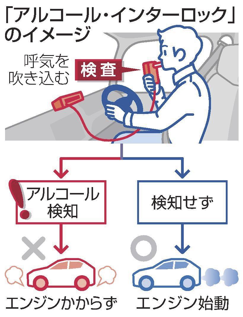 運転手の呼気から規定値を超えるアルコールを検出すると、車のエンジンがかからなくなる装置「アルコール・インターロック」に注目が集まっている。欧米で普及が先行し、国内でも導入する企業が出ている。千葉県八街市で児童が飲酒運転の大型トラックにはねられ死傷した事故を受け、普及に向けた国の検討も活発となっている。