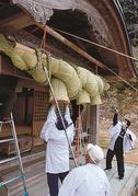 工事は昨年6月から社殿の銅板ぶき屋根や千木の改修などを行った。