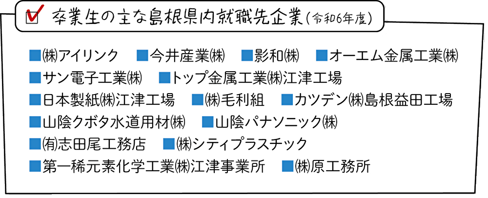江津工業では、就職や大学進学に向けて専門的な基礎知識を学び、様々な資格取得のための勉強をしました。