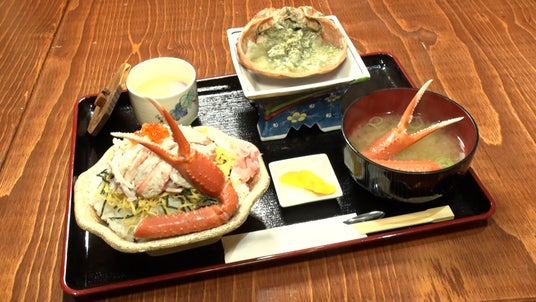 ここで番外編として島根・出雲大社とカニ三昧のプランもご紹介。11月にはカニが解禁され、ベニズワイガニ、松葉ガニをこれでもかと堪能できる。島崎藤村の作品にも登場する老舗旅館では、10品のカニ尽くし料理を楽しめる。カニ料理談義で盛り上がる3人。これぞ妄想旅の楽しみだ。