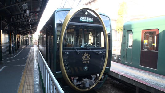 間もなく紅葉シーズン。最初に紹介するのは、押しも押されもせぬ世界的観光地・京都。主な目的地は叡山電車、嵯峨野トロッコ列車の2つ。八瀬比叡山口へは叡山電車ひえいで。フェイスに縦長の楕円を配した大胆すぎるデザインに、礼二も「輪っかをあそこにやろうと言ったの、誰やろ?」と感心しきりだ。比叡山では、フォトジェニックすぎるスポットとして話題の瑠璃光院へ。紅葉がテーブルに反射した通称“紅葉テーブル”。その美しさに、友近、礼二、南田も息をのむ。
