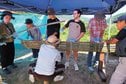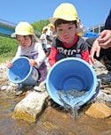 イベントは、江の川に親しんでもらおうと同組合が企画。町内の園児から中学生までと保護者ら計23人が参加した。9人のボランティアが運営に当たった。
