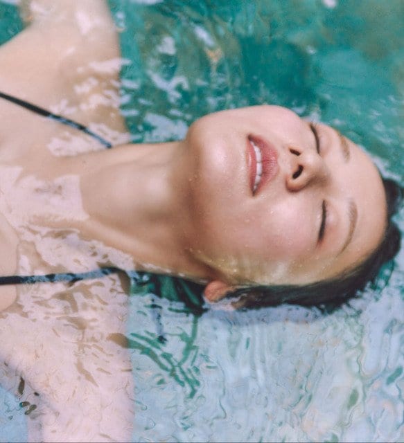 今回公開されたのは、コペンハーゲン随一のデザイナーズホテルのプールで撮影したブラックビキニのショット。世界中の人が注目するおしゃれなプールの装飾に心奪われ、天井を見つめた後、ふいに瞳を閉じた瞬間を激写。いまだかつてないほど大人の表情を切り取った。この写真集の完成度の高さを物語る1枚となっている。