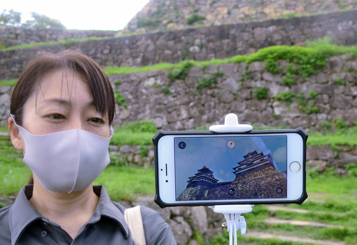 このほかAR(拡張現実)カードも制作した。ストリートミュージアムを起動した状態でカメラをかざすと、手のひらサイズの米子城が画面上に現れる。山陰歴史館(中町)や米子まちなか観光案内所(灘町1丁目)で無料配布する。