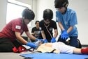 災害が起きた時の避難所にいる寝たきりの高齢男性、視覚障害者などの被災者を想定し、治療などの優先度を決める「トリアージ」を行った。参加者は被災者のそばに駆け寄り、体調やアレルギーの有無などを聞き取り、福祉避難所や病院などの搬送先を決める判断力が試された。