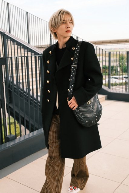 道枝は、ヴァレンティノの最新ルックとアクセサリーをまとい、空港に登場。2025-26年秋冬コレクションのゴールドのボタンがきらびやかなウールコート、2026年スプリング メンズコレクションに登場する大胆なコントラストで描かれたVロゴが特徴のニットとアースカラーのチェック柄パンツに、モノトーンのチェッカーボードモチーフに真っ赤なドットを配した「ヴァレンティノ ガラヴァーニ アンド ヴァンズ」のスニーカーを着用した。
