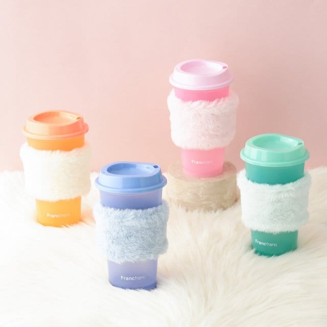 人気の「カラーチェンジタンブラー」にホットタイプが登場。もこもこのファーがアクセントになったフォトジェニックな仕掛けを楽しめるアイテムとなる。約45℃以上の温かいドリンクを注ぐと本体の色が変化する。容量は440ml。冬らしいもこもこのファーを使用したスリーブ付きなので、熱さを気にせず快適に持つことができる。