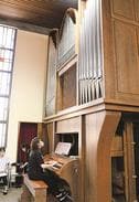 さんびる文化センタープラバホールの専属オルガニストの米山麻美さんが3種類のオルガンで演奏した。オルガンの特徴や演奏する曲を説明しながら弾いた。バッハの「G線上のアリア」やドボルザークの交響曲第9番「新世界より」などオルガン独特の音が響いた。