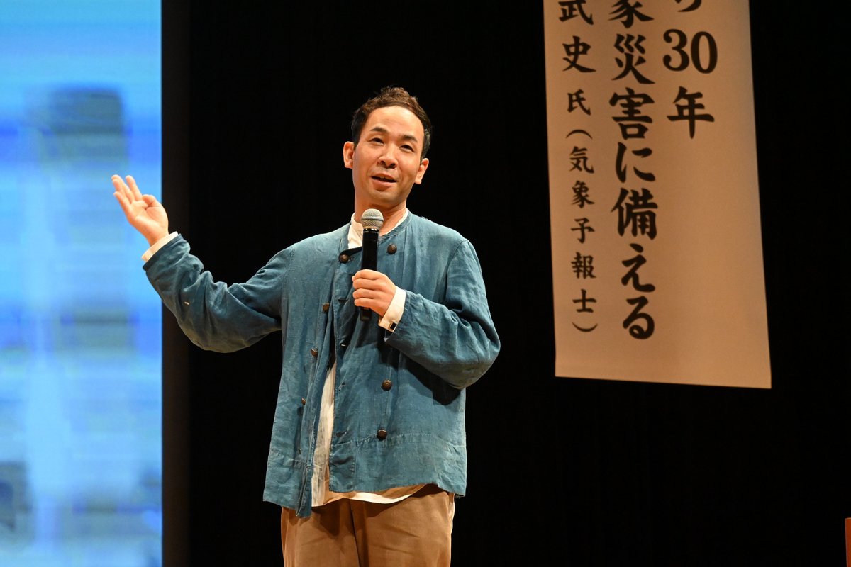 それに比べ、地震や津波は前兆を感じ取れない。「避難する際は持病の薬や入れ歯など、人から借りられない物は必ず準備しておく必要がある」と紹介。靴や自分の存在を外部に知らせるホイッスルを必需品に挙げ、「僕は常に身に着けている」と停電時に使う小型ライトも披露した。