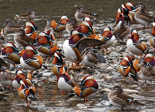 現施設は、1994年11月に発足したオシドリグループ(会員6人、案内ボランティア8人)がベニヤ板を持ち寄って設置。晩秋から初春のシーズン中のピーク時には、1千羽を超すオシドリの生態や行動、特徴が間近で観察でき、これまでに全国から延べ約20万人が訪れた。