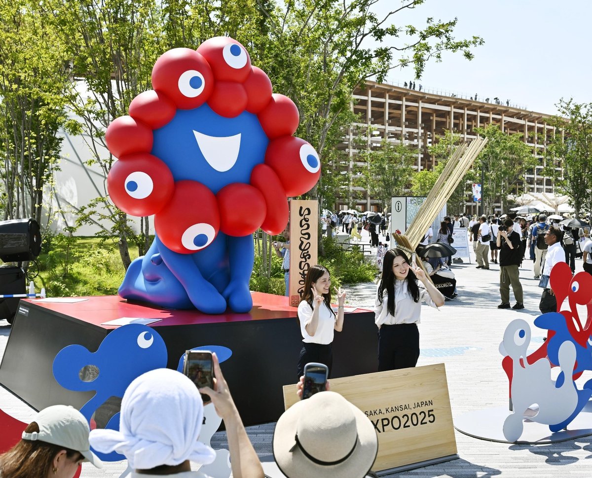 もう一つ、レガシーになりそうなのが公式キャラクターのミャクミャクだ。赤い円形が輪のように連なる細胞をイメージしたロゴマークに「清い水」を表す青色の体。奇抜なデザインだけに「不気味」「怖い」など悪評も多かった。