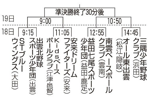 JAカップ第42回島根県学童軟式野球選手権大会(山陰中央新報社、県軟式野球連盟主催、JAしまね、JA共済連島根特別協賛)が18、19の両日、松江市営野球場(松江市上乃木10丁目)で開かれる。各地区代表8チームを紹介する。